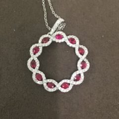 14K Invisible Set Ruby and Diamond Halo Pendant
